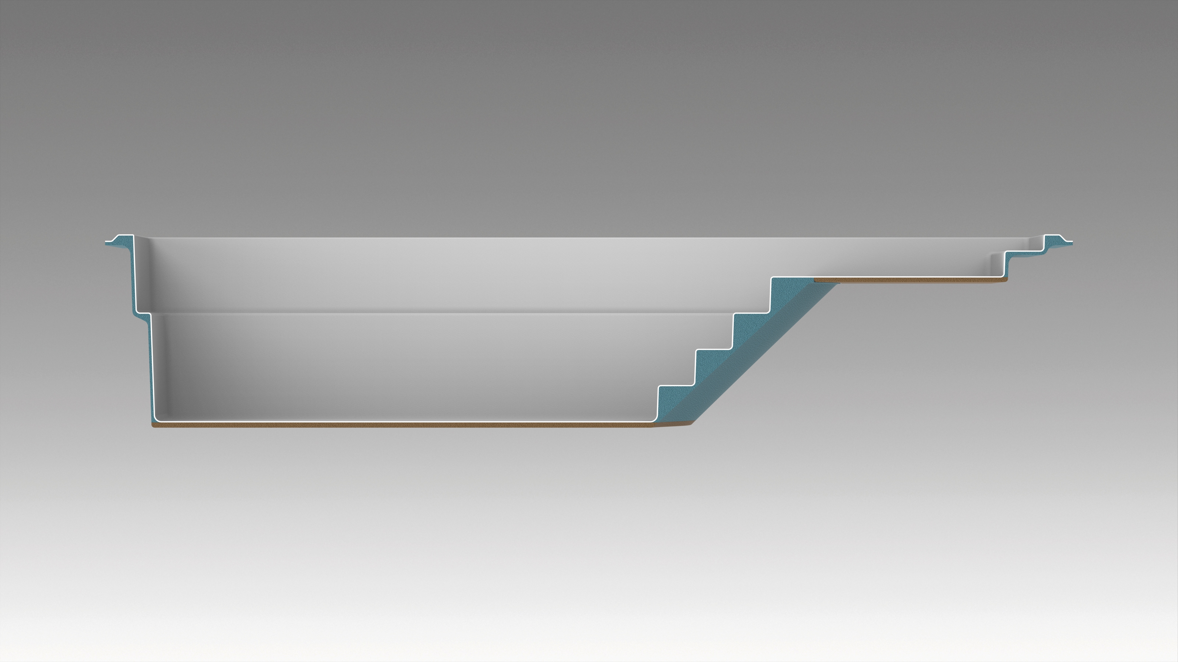 Le tapis AquaCove est composé d’un matériau PE-EVA, une mousse souple et antiglisse utilisée depuis de nombreuses années pour recouvrir le plancher des bateaux de plaisance. Il offre une finition texturée, douce et agréable au toucher. Il améliore le confort en absorbant les chocs et en tempérant la surface exposée au soleil. Le tapis est collé directement en usine.